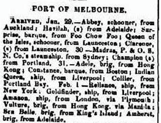 ARRIVED Feb 1 Goldfinder ship from Liverpool)