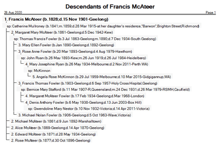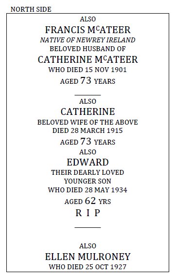 Francis McAteer 1828–1901, and Catherine Mullroney c1841 – 1915, were married in 1859.