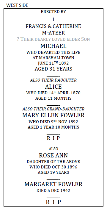 MCATEER FAMILY MONUMENT Geelong Eastern Cemetery