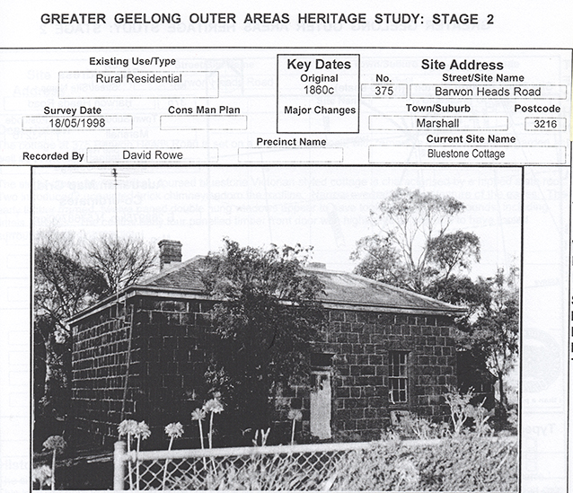 This study includes Record Sheets of Heritage Places – Marshall and recommends that the cottage should be included in the City of Greater Geelong heritage overlay.