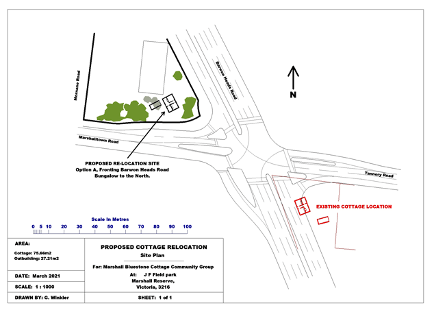 On 9th December 2020 the Marshall Bluestone Cottage Community Group was formed. The Group has engaged with the community to conserve the 1866 house and outbuilding, presently located at the south-east corner of the intersection of Tannery and Barwon Heads Roads, known as 8a Tannery Road, or 375 Barwon Heads Road.
